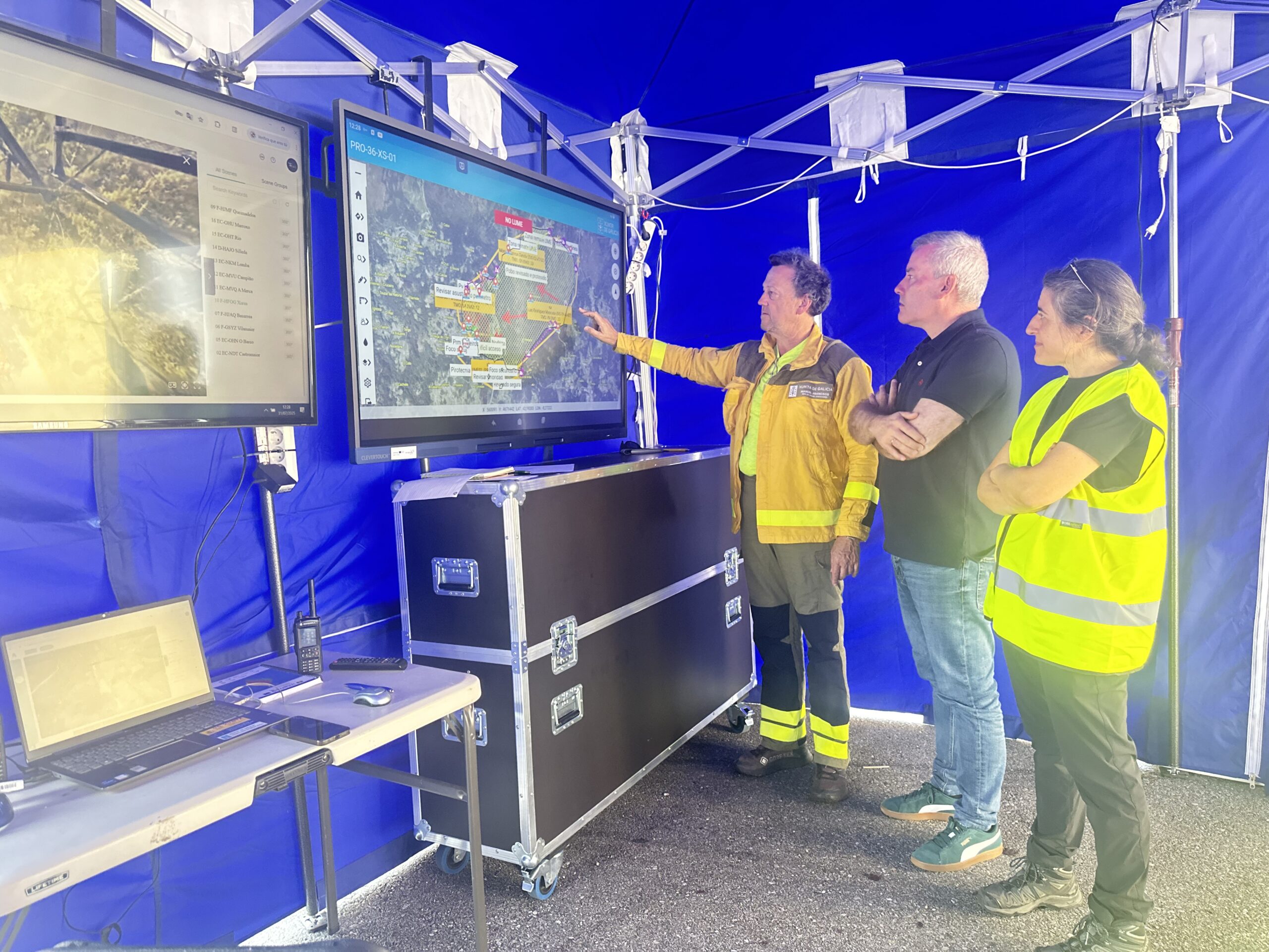 Durante a emerxencia despregouse un amplo dispositivo de medios de extinción cunha resposta exemplar por parte de todas as administracións implicadas, entre elas a Axencia Galega de Emerxencias (AXEGA) da Xunta de Galicia, a Unidade Militar de Emerxencias (BIEM5), brigadas terrestres, motobombas, bulldozers, medios aéreos, Garda Civil —con 17 patrullas activadas—, Policía Autonómica e Policía Local, que sumaron máis de 200 profesionais.