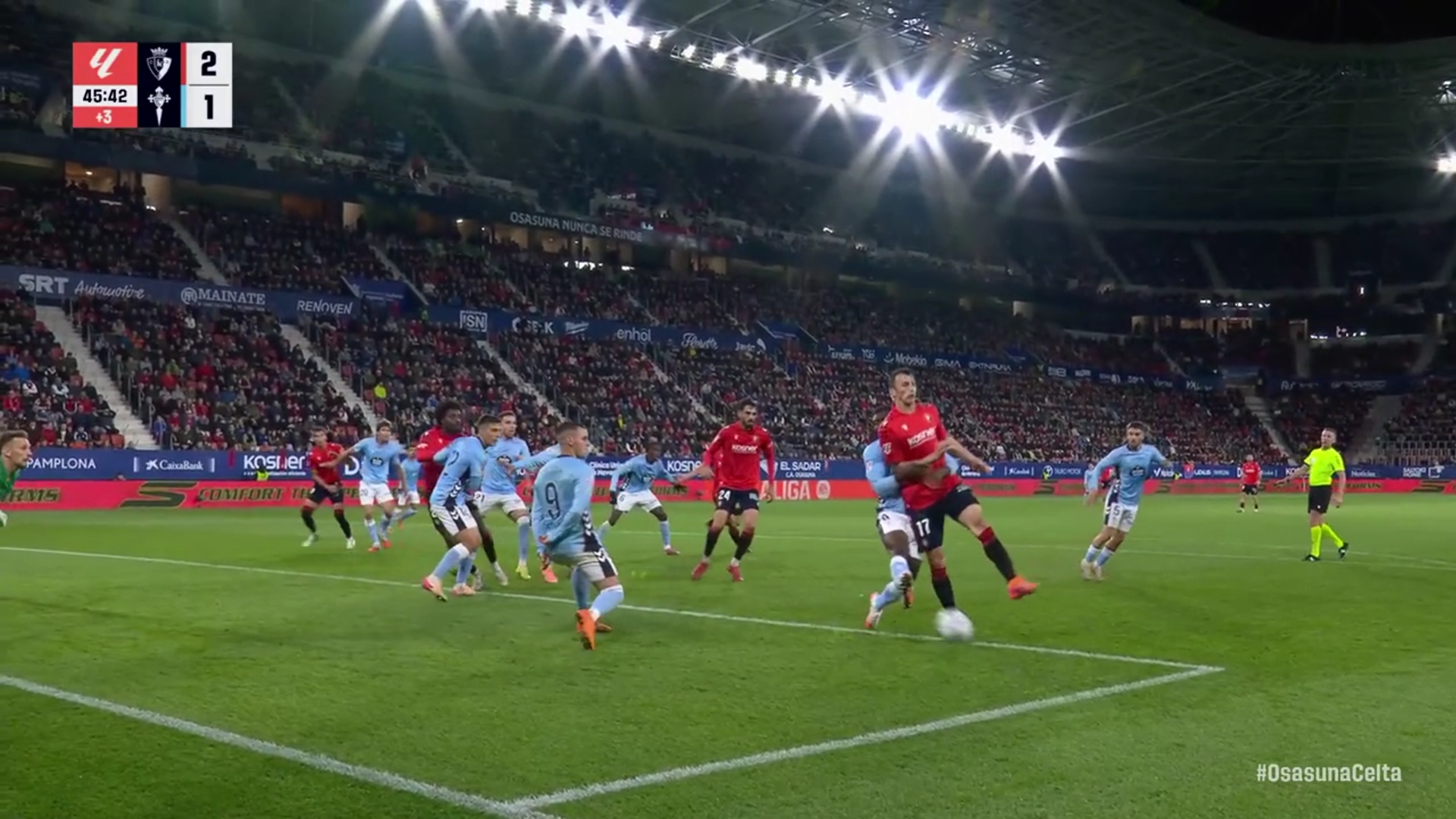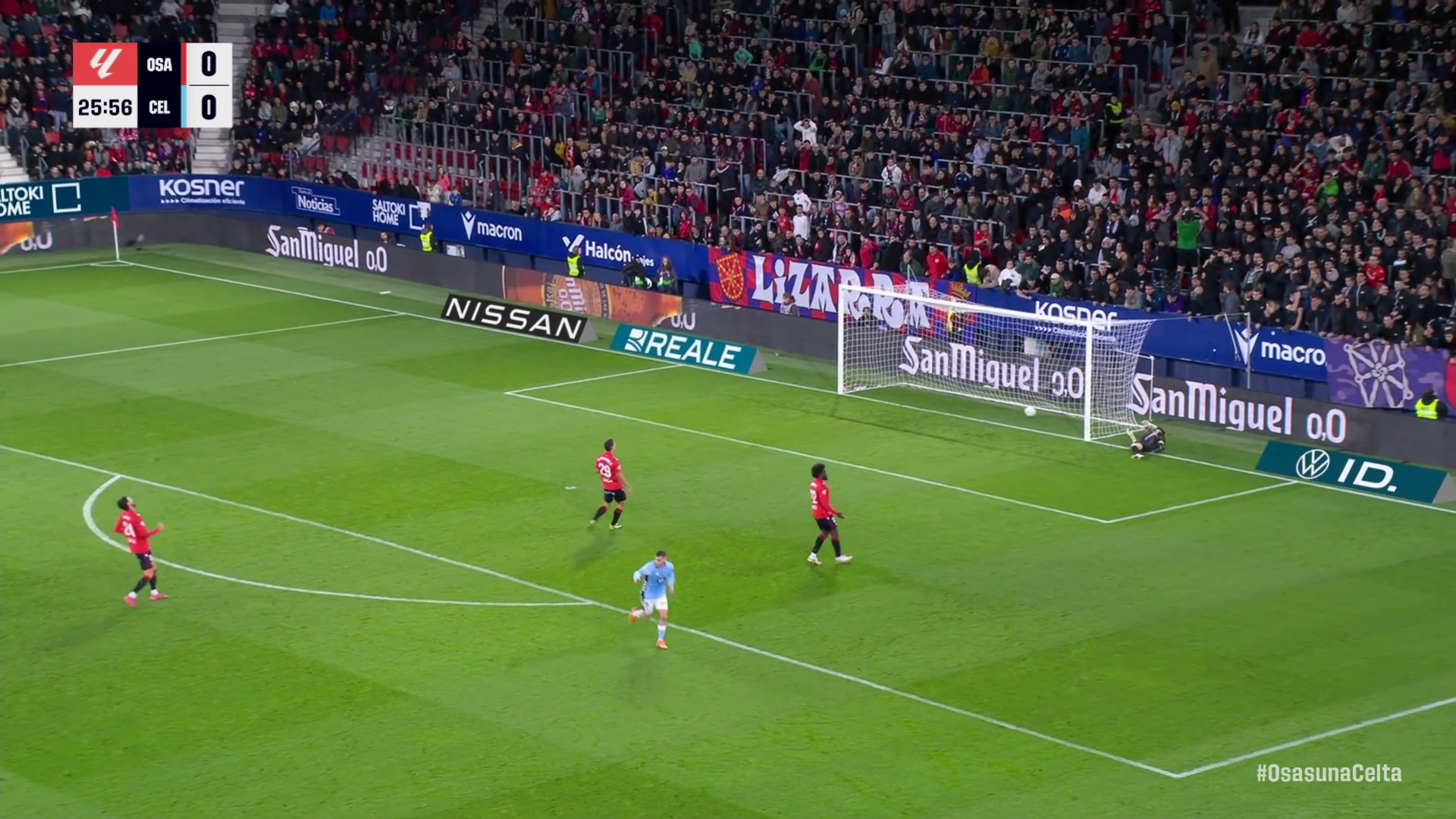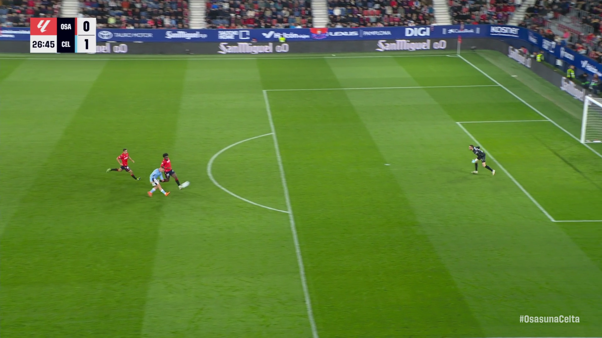 El conjunto navarro arrancó fuerte, dominando el juego y generando peligro constante. Víctor Muñoz y Budimir avisaron con disparos que rozaron el gol antes de que el Celta, algo impreciso en salida, sorprendiera a la contra.
