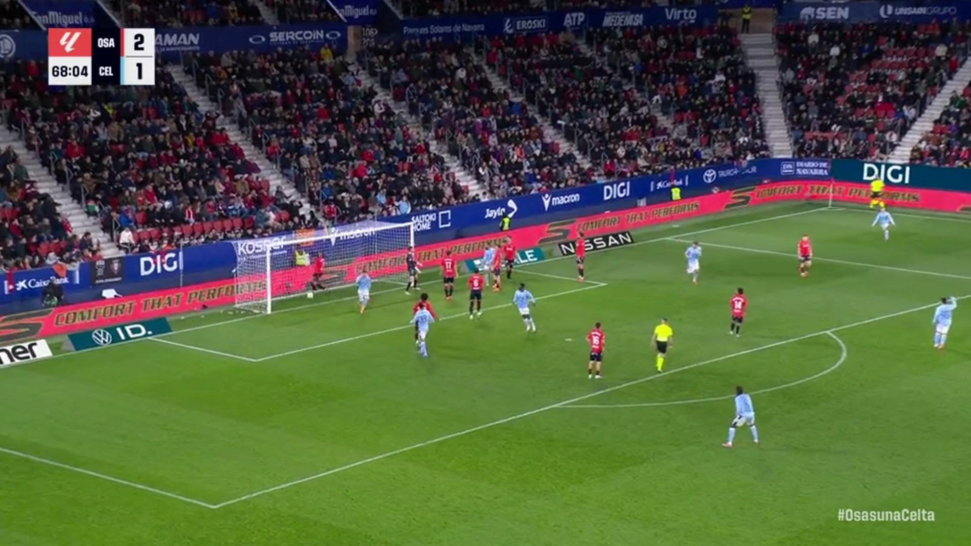 El fallo fue el punto de inflexión. En una contra perfecta, Pablo Durán definió con frialdad ante Herrera y selló el triunfo celeste (2-3, m.88), rompiendo así una racha de nueve jornadas sin ganar y la imbatibilidad de Osasuna en su estadio.