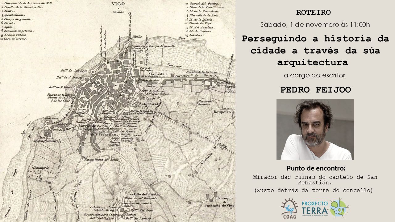 A Delegación de Vigo do Colexio de Arquitectos de Galicia (COAG) organizará mañá sábado, 1 de novembro, unha ruta polo Vigo histórico, guiada polo escritor Pedro Feijoo. Esta actividade enmárcase dentro das actividades complementarias do 1º Congreso Ibérico de Educación pola Arquitectura, que se celebrará en Vigo os días 7, 8 e 9 de novembro, con motivo do 25º aniversario do ProxectoTERRA. O roteiro, titulado “Perseguindo a historia da cidade a través da súa arquitectura” comezará ás 11:00 horas (o punto de encontro será o Miradoiro das ruínas do Castelo de San Sebastián, xusto detrás da torre do Concello).