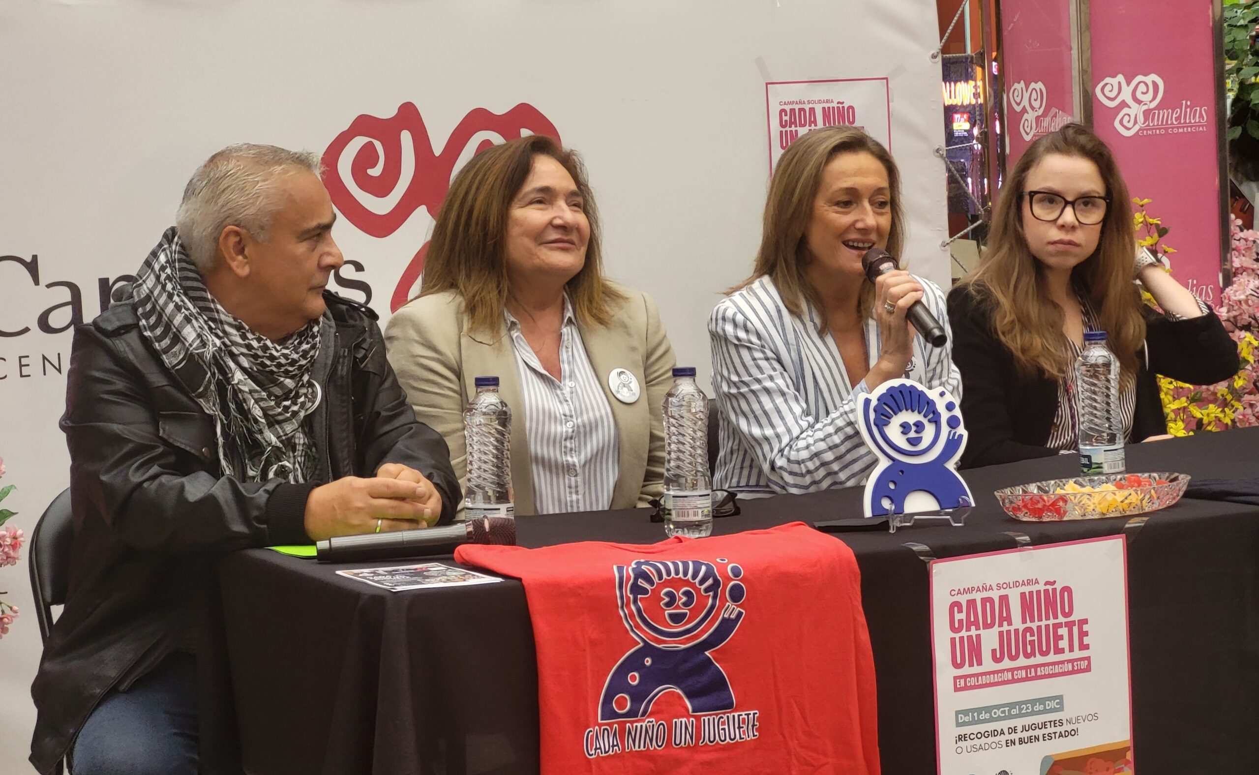 Sandra Rodríguez, directora CC Camelias; Luisa Sánchez, vicepresidenta Diputación Pontevedra; Ana Ortiz, Delegada Territorial de la Xunta en Vigo; y Carlos Leiro, director de la campaña "Cada Niño Un Juguete".