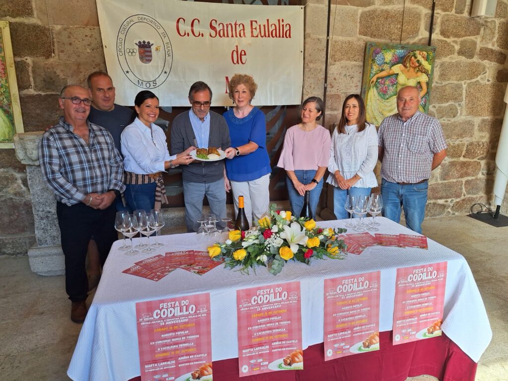 O Concello de Mos presentou esta mañá a 25ª edición da Festa do Codillo, organizada polo Círculo Cultural e Deportivo Santa Eulalia de Mos. Trátase dunha das citas máis queridas e consolidadas do calendario cultural e gastronómico do municipio, símbolo da unión veciñal e do orgullo de parroquia, e na que se estima que se repartirán unhas 3.000 racións deste exquisito prato a un prezo de 15 euros (12 euros no caso de que sexa para levar).