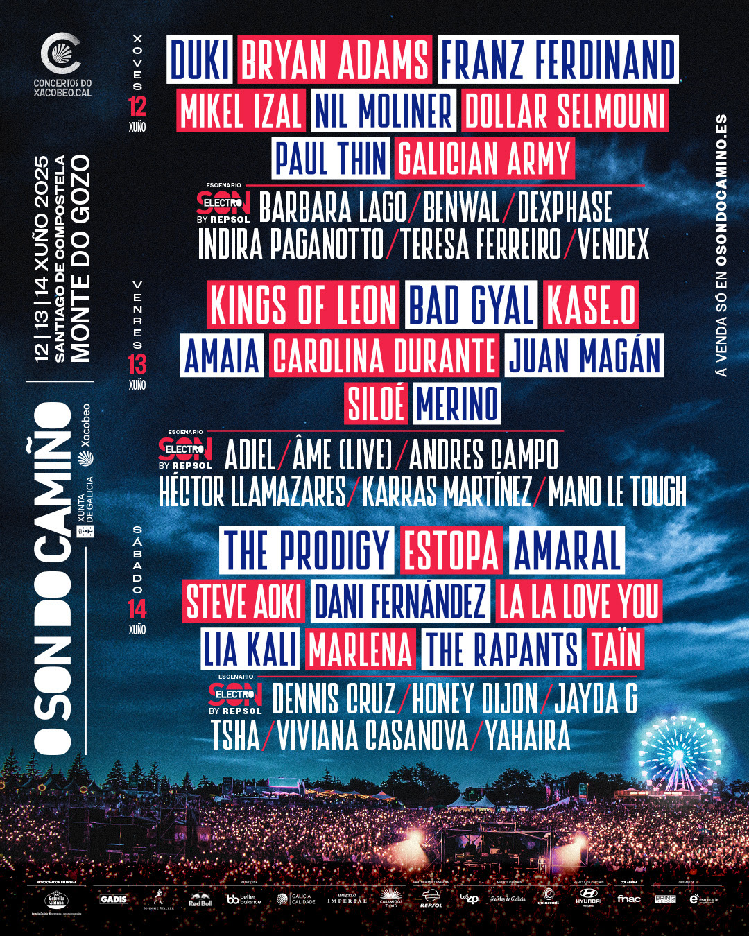 El festival más grande del norte de España y uno de los más reconocidos del país, O Son Do Camiño, desvela hoy los nuevos artistas que se suman a su impresionante cartel para la edición 2025: The Prodigy, Amaia, Paul Thin, Héctor Llamazares y Karras Martínez. Un año más, el evento promete ser un referente en la música nacional e internacional con un line-up que no dejará indiferente a nadie. Además, el festival anuncia su esperada programación diaria, cuya venta estará disponible a partir del próximo martes 1 de abril a las 12h. desde 59€ solo en www.osondocamino.es.