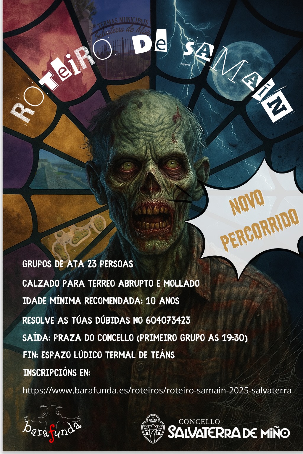Un ano máis o Concello de Salvaterra de Miño organiza o Roteiro Nocturno de Samaín, unha data moi esperada entre o público que neste 2025 celebrarase o 31 de outubro e terá un novo percorrido. Será unha noite terrorífica para nenos e nenas, cunha idade recomendada a partir dos 10 anos, e adultos.