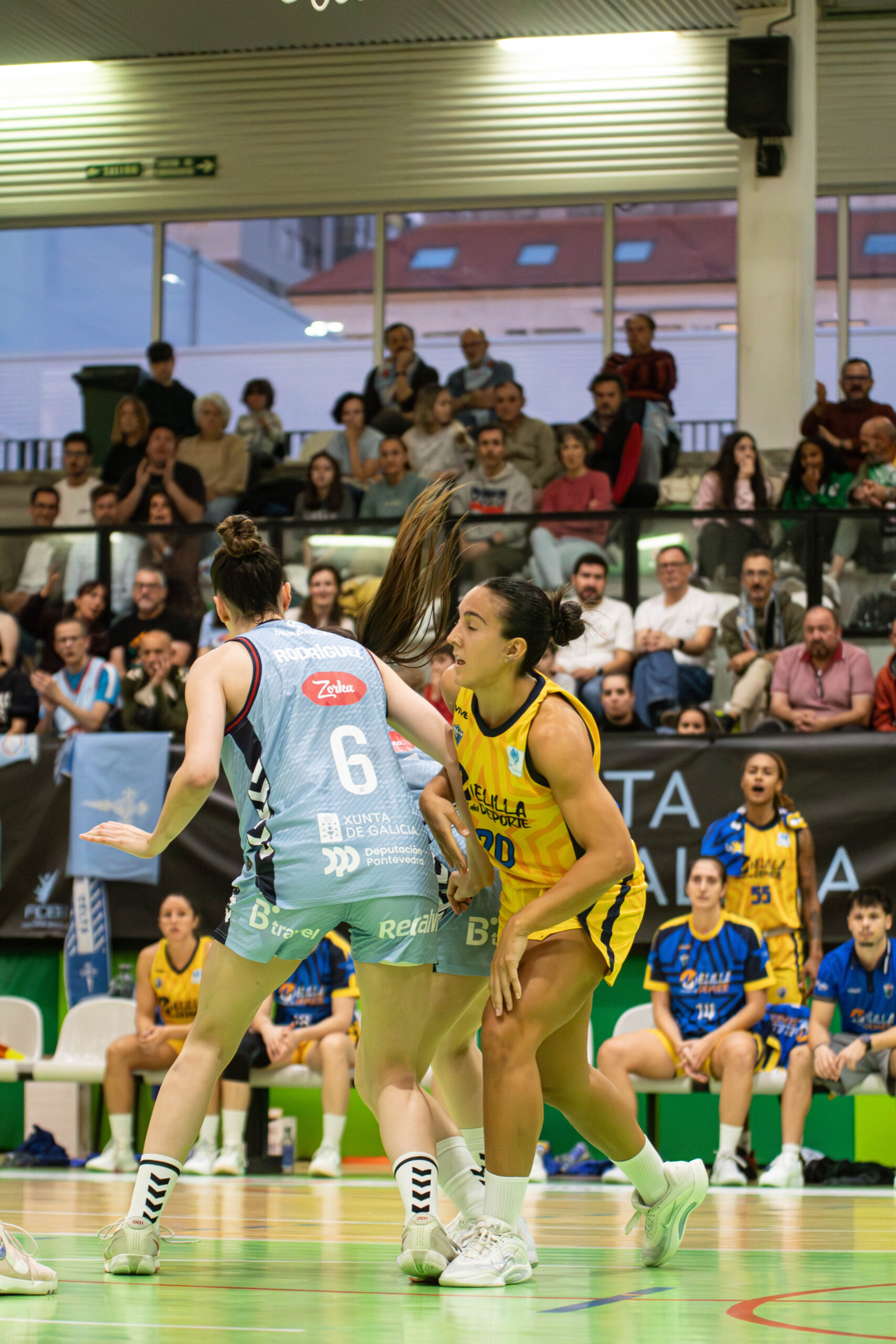 Celta reaccionó con los triples de Carlota Menéndez (tres en la primera mitad) para recortar diferencias, aunque las melillenses mantuvieron la delantera al descanso (29–35).